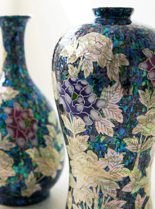Exquisite Detail: Even the mouths of the vases are meticulously finished with natural mother-of-pearl, showcasing the true spirit of a master craftsman.